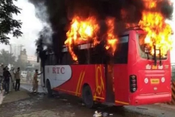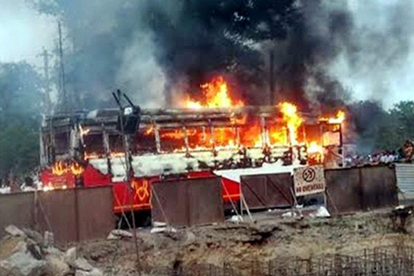 भटिंडा: भटिंडा से चलकर जालंधर जा रही आर.टी.सी. की (पीबी 19 एल 0555) ए.सी. बस को रामपुरा फूल के नजदीक आग लग गई। हादसे में 3 लोग जिंदा जल गए, जबकि 22 घायल हो गए। इनमें 3 जिंदगी व मौत की लड़ाई लड़ रहे हैं। इस घटना का कारण बस चालक की लापरवाही मानी जा रही है क्योंकि आम तौर पर बस चालक फाटक पार करके ही बस को रोकते हैं।